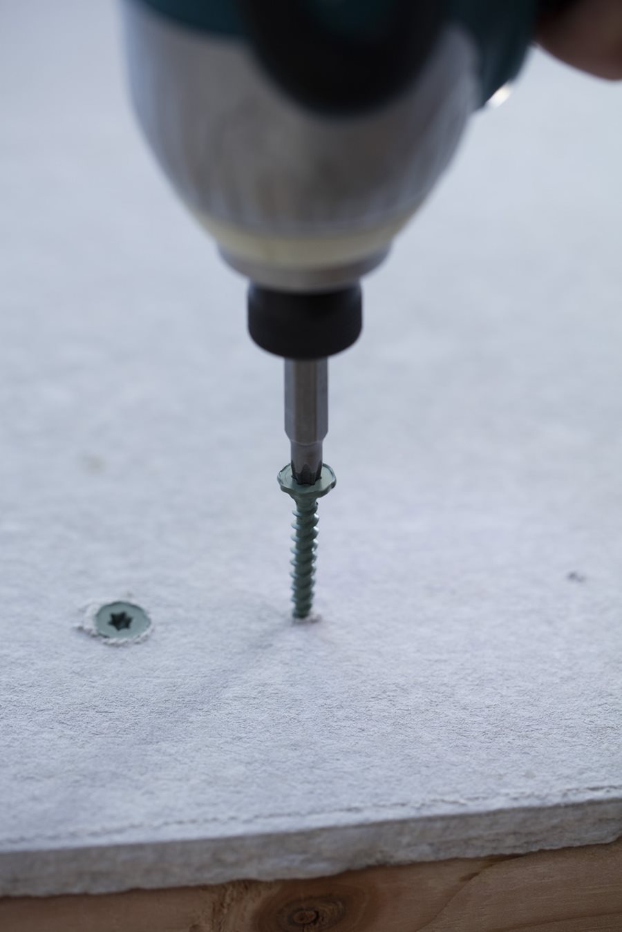 In ceiling applications, screws should be placed every 6"". You will use approximately 55 screws per 3' x 5' cement board and 150 screws per 4' x 8' cement board.